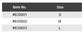 Size Charts