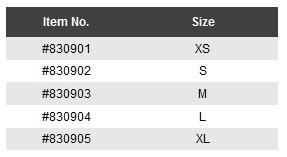 Size Charts